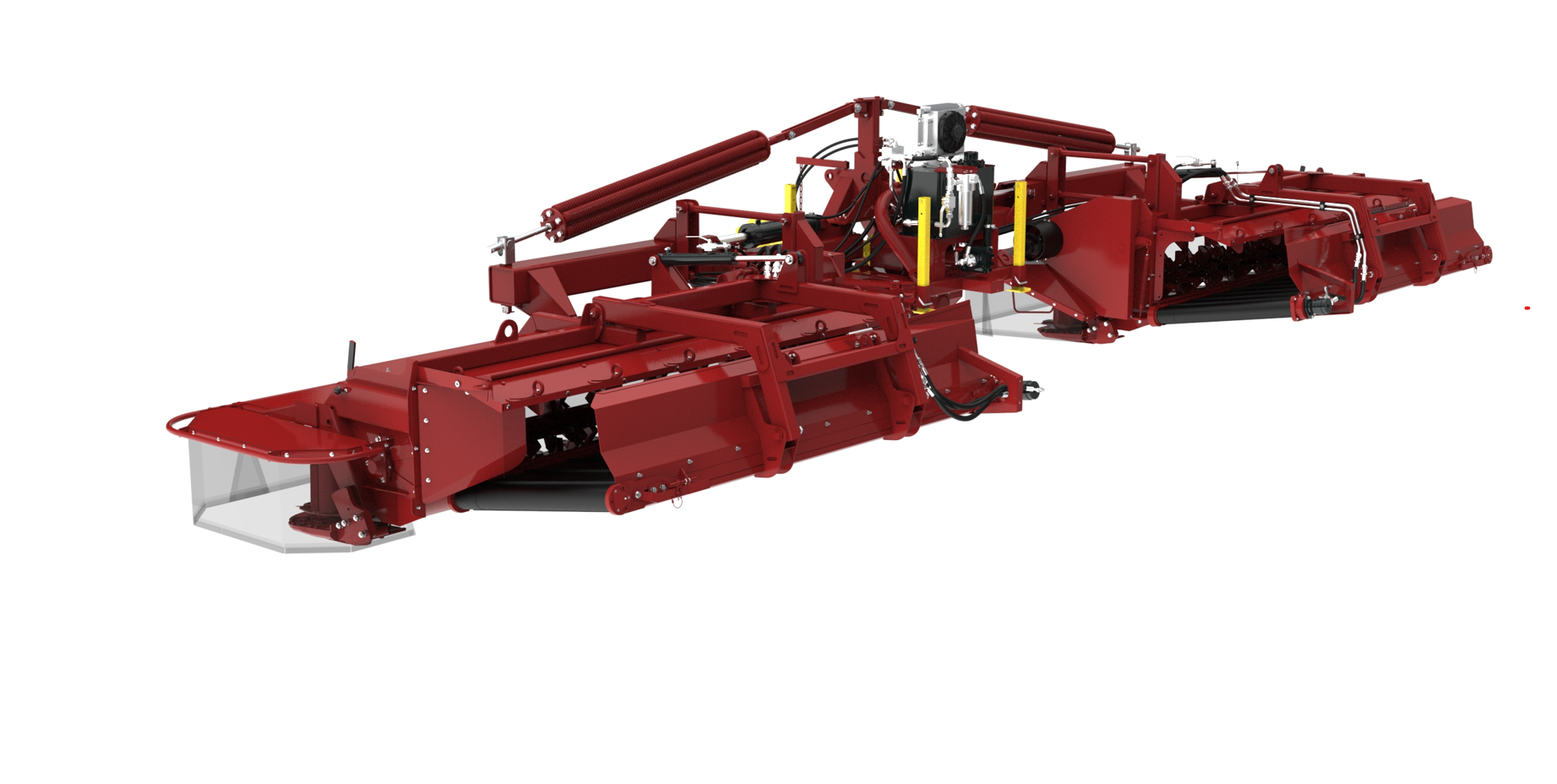 Высокая производительность косилки обеспечивает выполнение работ по заготовке сена и сенажа, включая уборку и сушку до нужной влажности за короткий промежуток времени, а кондиционирование и рыхлая укладка валков значительно ускоряет процесс провяливания, экономя время и уменьшая число технологических операций. Косилка оборудована собственной гидравлической станцией для обеспечения вращения транспортеров. Передняя секция косилки имеет независимы от трактора механизм копирования.