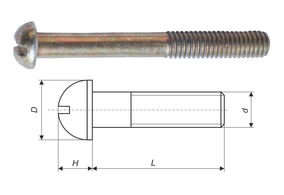 винта с полукруглой головкой диаметром d=М6, классом точности В, классом
