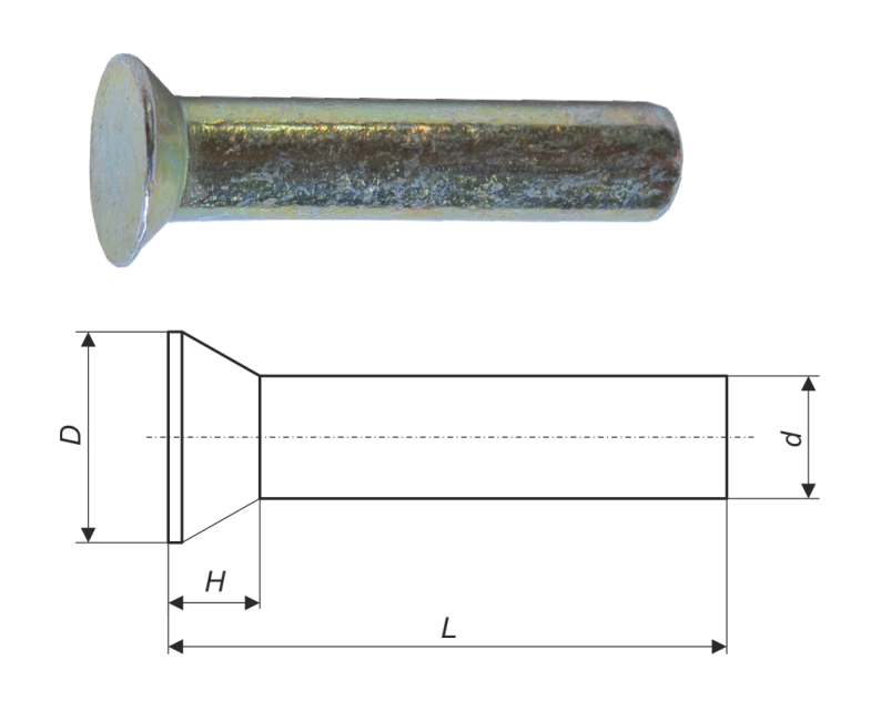 заклёпки с потайной головкой класса точности В диаметром d=6 мм,