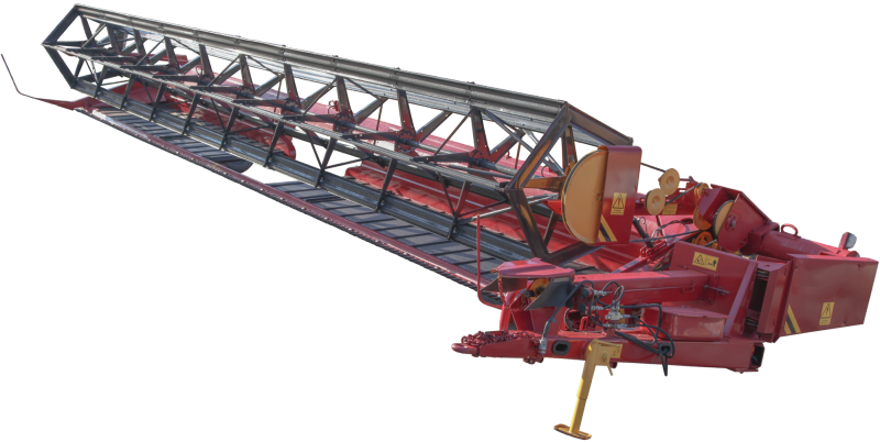 Конструкция прицепного устройства и расположение задних колес с углами завала и атаки поддерживают прямой угол между направлением движения трактора и режущими аппаратами жатки. Перевод жатки из транспортного положения в рабочее и обратно выполняется одним работником и не требует расцепки с трактором.