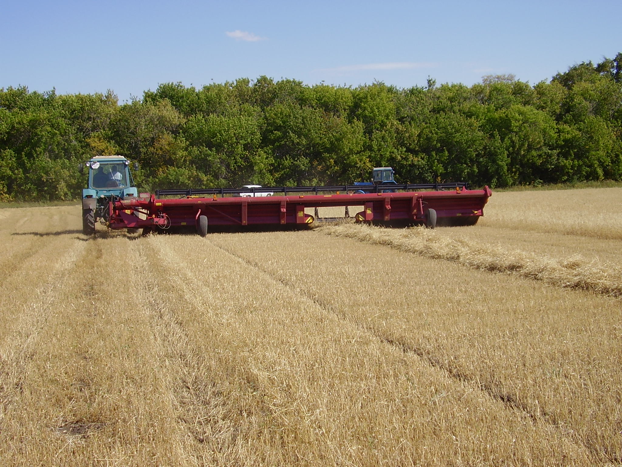 Вторая жатка ЖВЗ-9,2 укладывает валок слева по ходу движения. Жатки обеспечивают укладывание валка хорошего качества и оптимальной ширины, высокую продуктивность работы на скашивание и на подбор. Основное преимущество укладки сдвоенного валка с захватом 19,5 метров заключается в возможности последующей оптимальной загрузке самоходных комбайнов в агрегате с зерновыми подборщиками.