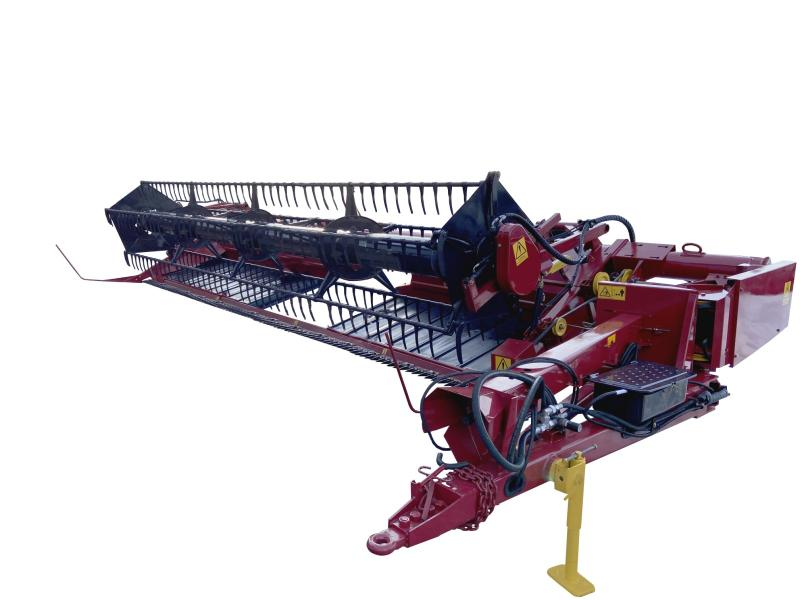 Возможность маневрировать в транспортном положении за счет гидропривода управления поворотом заднего колеса. Режущий аппарат с планетарным редуктором и двойными коваными пальцами обеспечивает эффективное резание. Перемещение срезанной массы от режущего аппарата к выгрузному окну осуществляется ленточными транспортерами, благодаря чему обеспечивается более чистая и бережная уборка зерновых культур с минимальными потерями зерна. Дваленточных транспортера жатки позволяют формировать валок "домиком" на стерне. Простота и быстрота перевода из транспортного в рабочее положение и обратно.