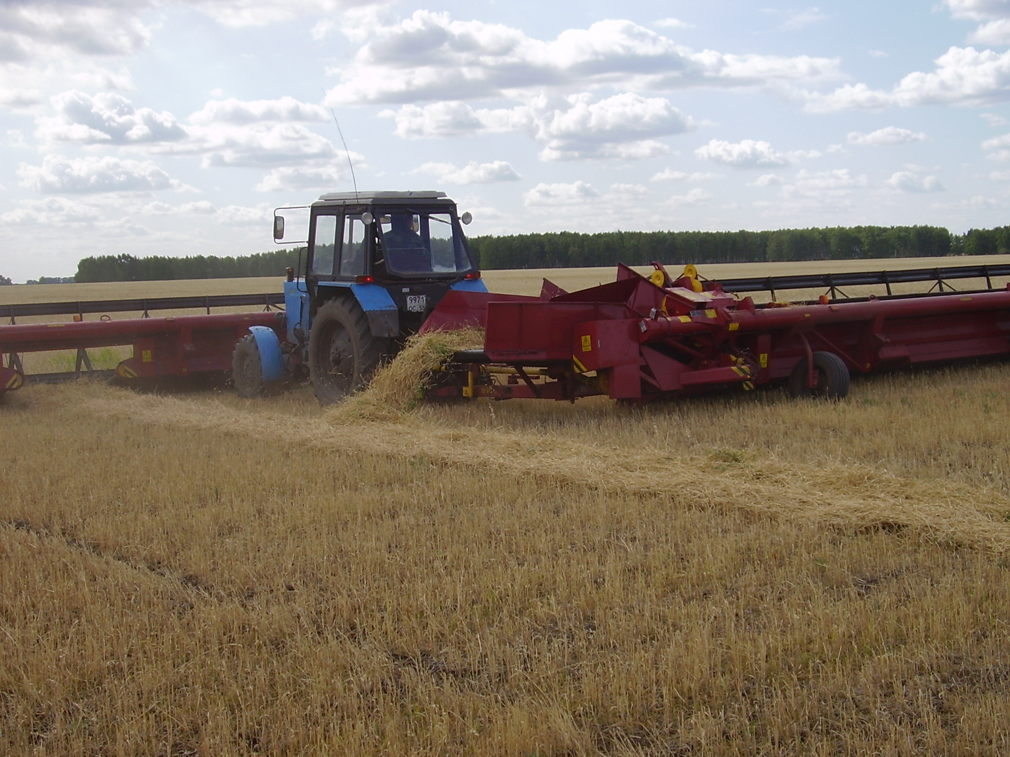 Вторая жатка ЖВЗ-9,2, укладывает валок слева по ходу движения. Жатки обеспечивают укладывание валка хорошего качества и оптимальной ширины, высокую продуктивность работы на скашивание и на подбор. Основное преимущество укладки сдвоенного валка с захватом 19,5 метров заключается в возможности последующей оптимальной загрузке самоходных комбайнов в агрегате с зерновыми подборщиками.